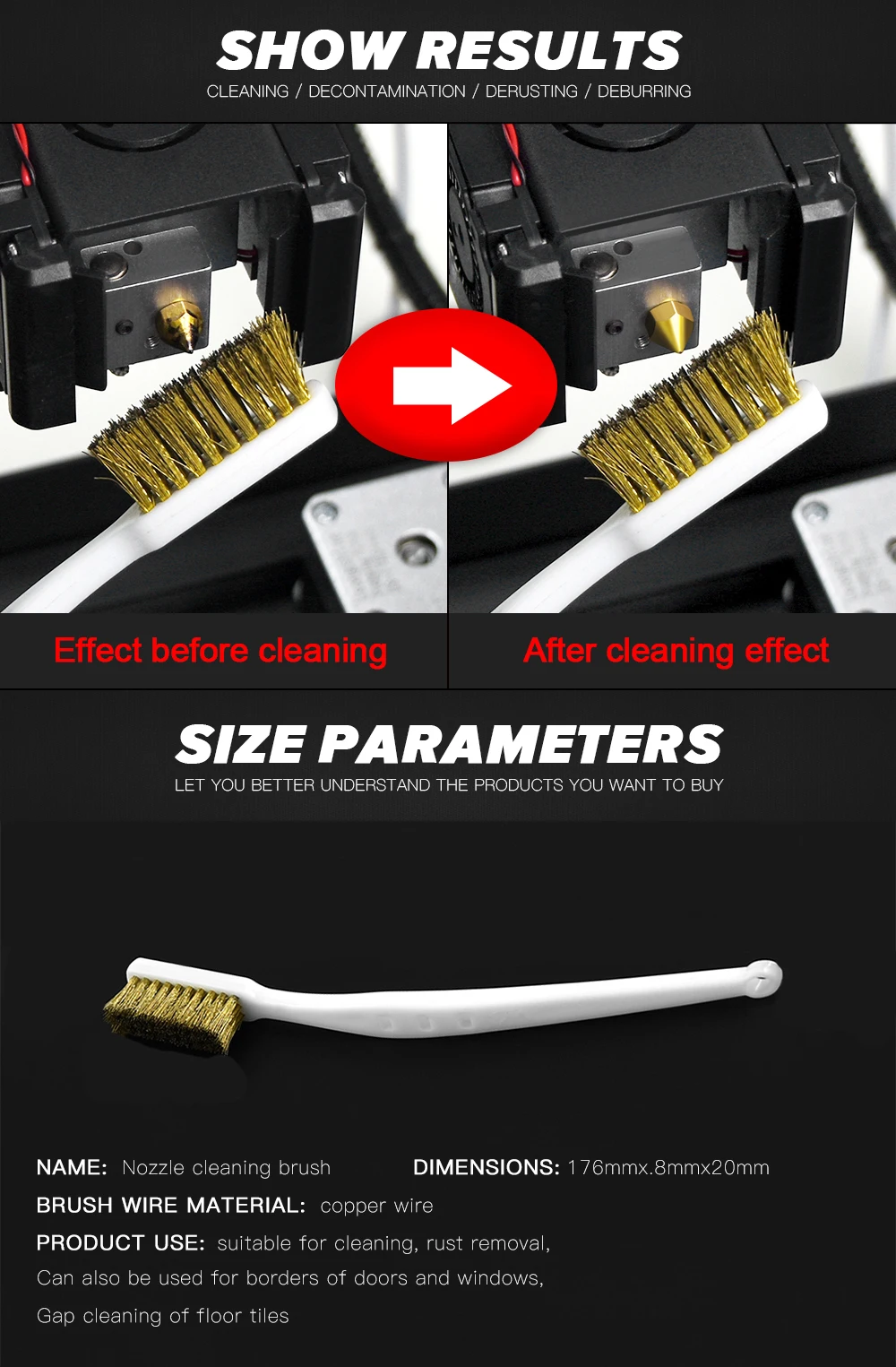 1/2/3Pcs Copper Wire Toothbrush Nozzle For 3D Printer Accessories Ender 3 CR10 MK8 E3D Extruder Cleaner Tool Copper Brush Handle