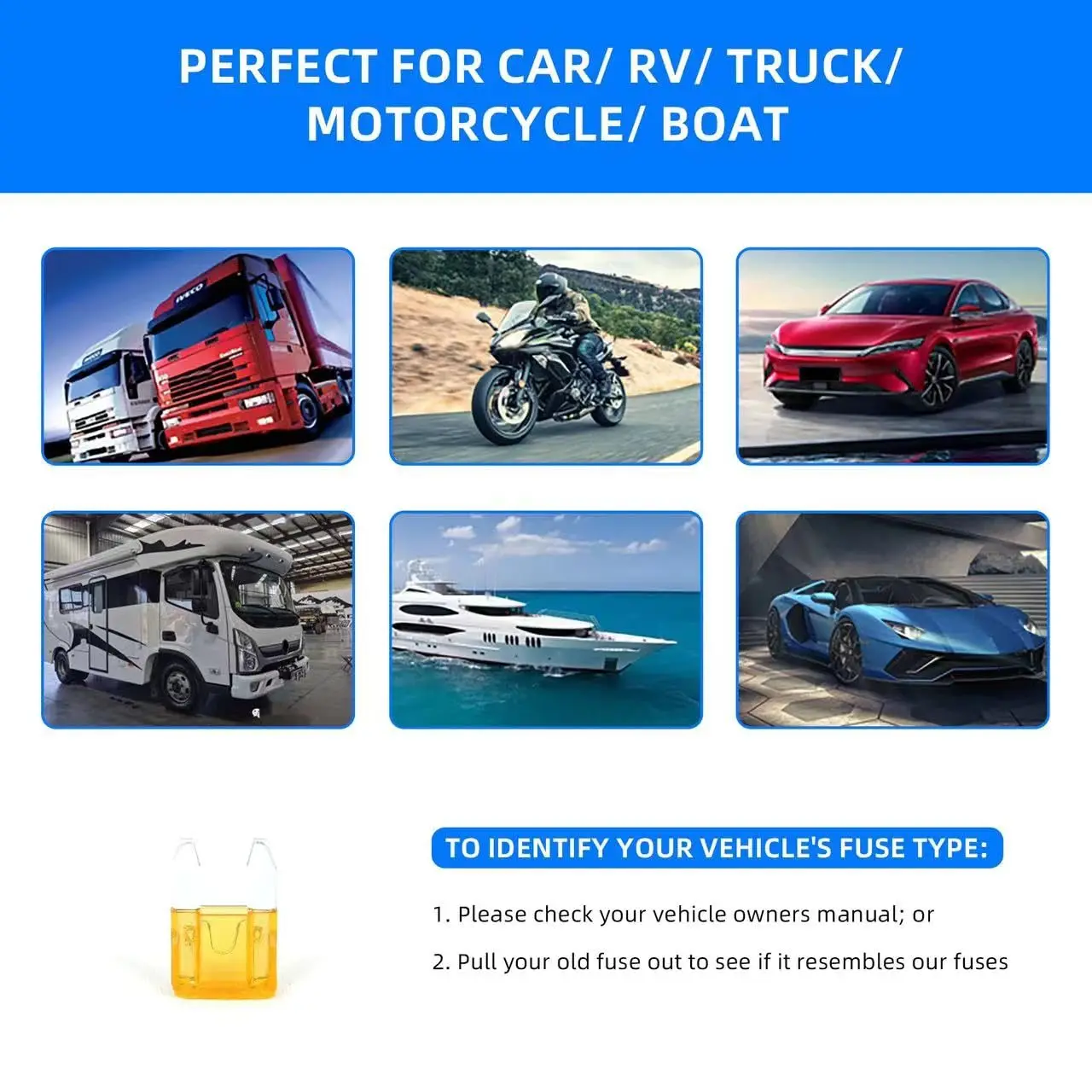 • Easy Identification & Use: Each fuse in our automotive fuses kit is color-coded and imprinted with ampere rating for quick identification, simplifying maintenance tasks for both experts and beginners.