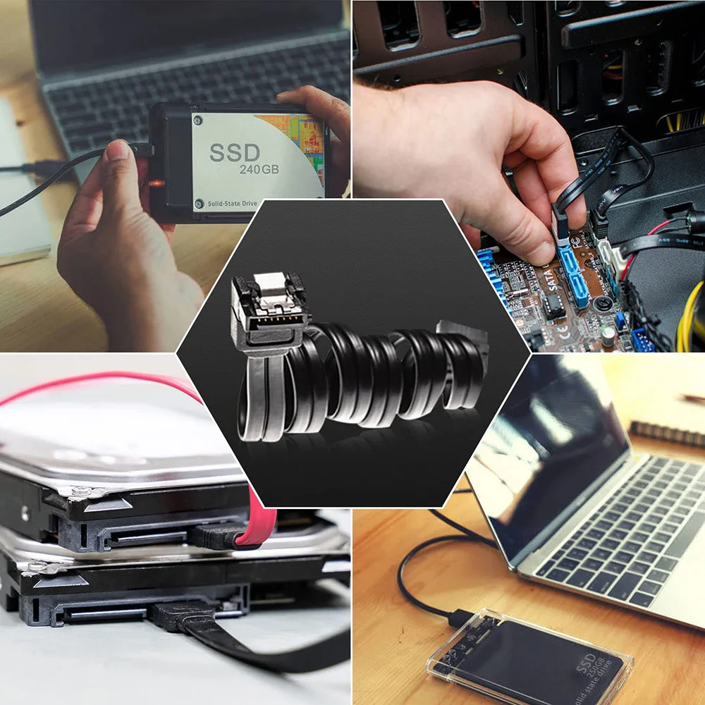 12-Pack SATA Data Cable 90 Degree Right Angle SATA III 6.0 Gbps Cable Black with Locking SATA Cable For HDD SSD CD DVD Drives