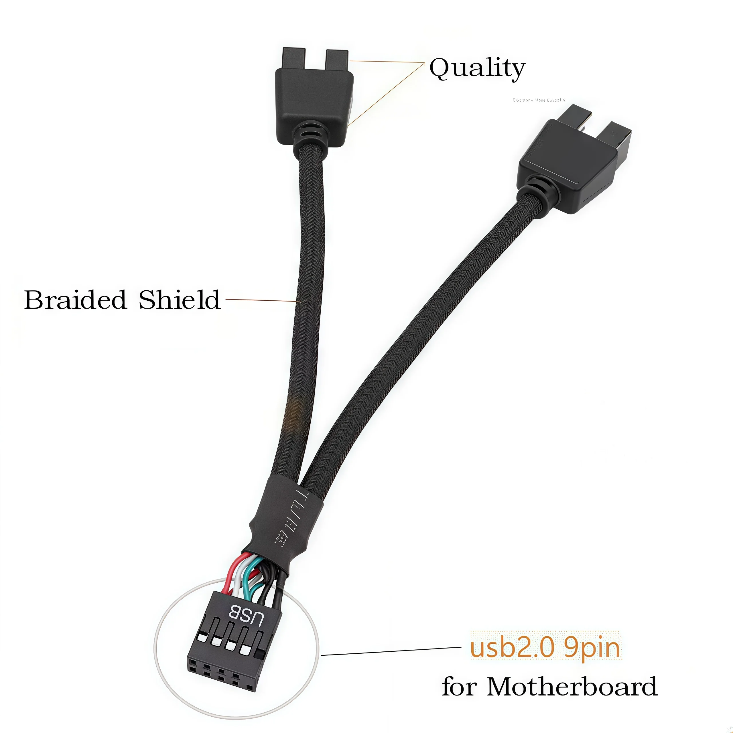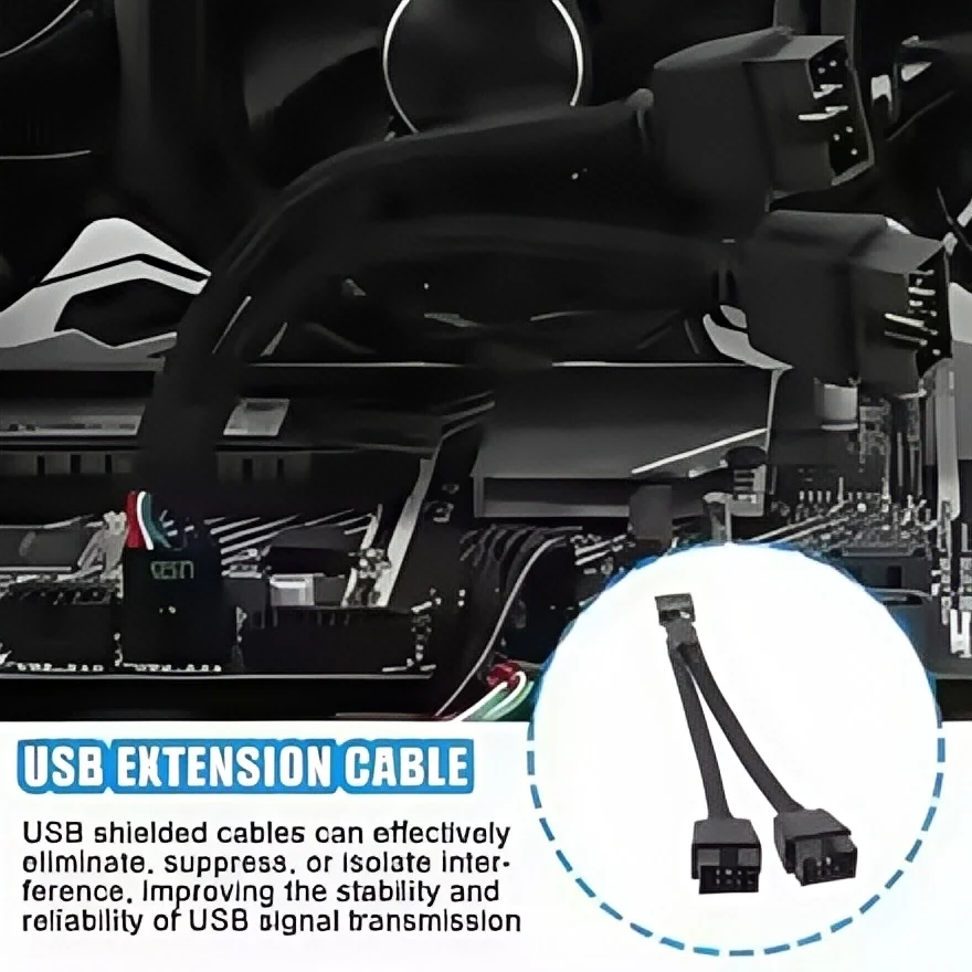 12cm 9-Pin USB 2.0 Y Splitter Cable - Female to Dual Male Motherboard Extension for PC Front Panel Audio & HD