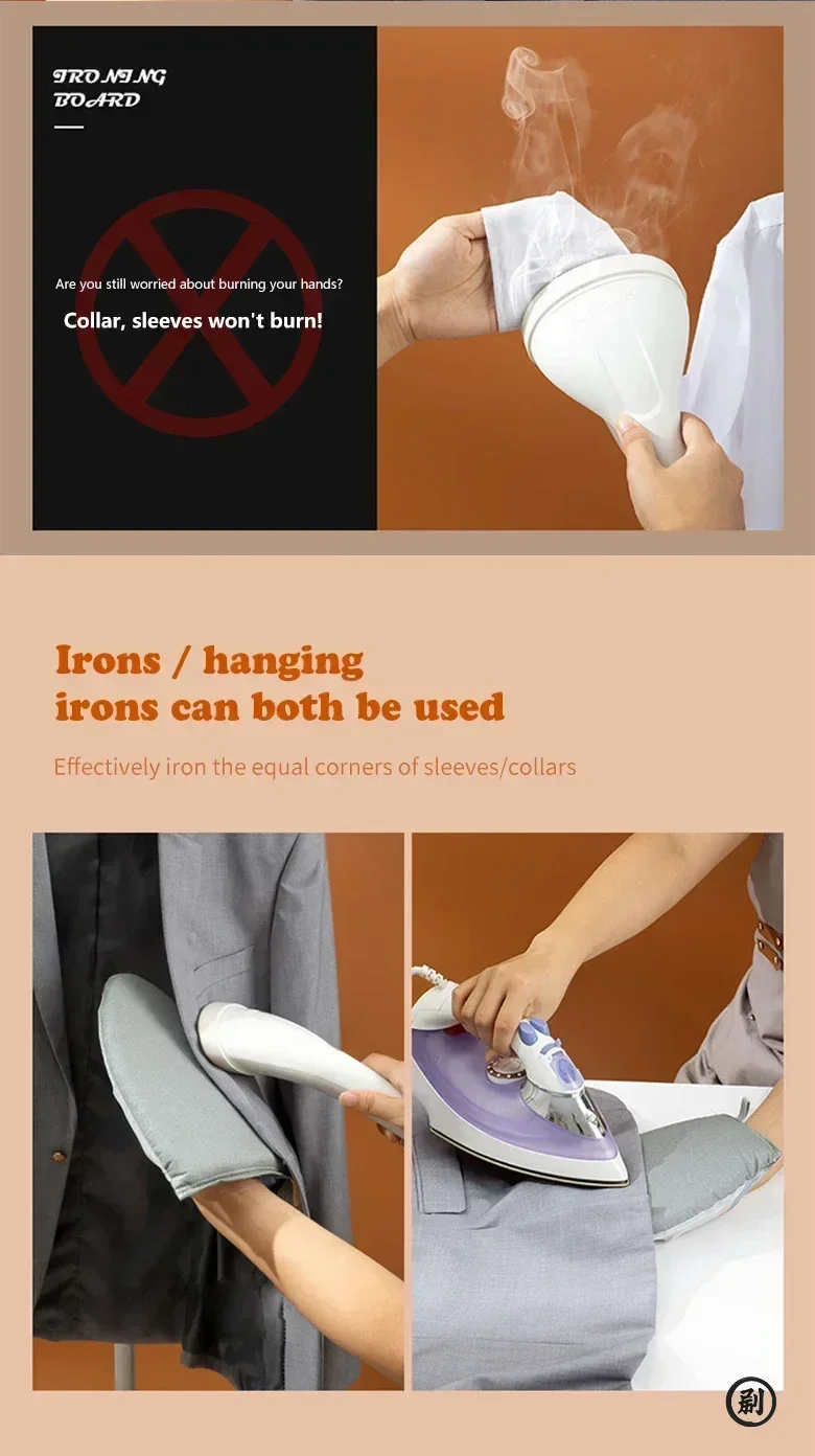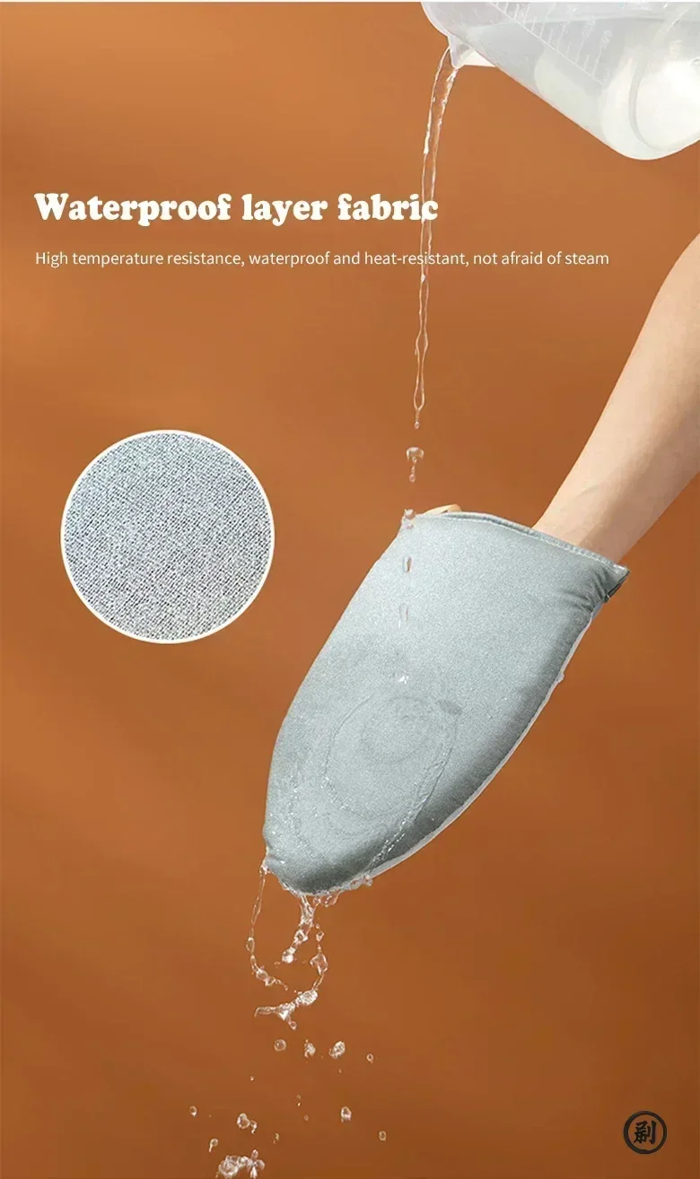 By using this small ironing board, it is more convenient to wear on the hand to iron the corners of clothes and prevent burns.