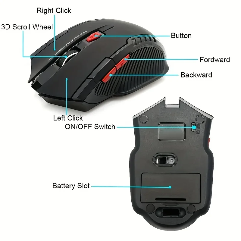 2.4GHz Wireless Mouse Adjustable DPI Mouse 6 Buttons Optical Gaming Mouse Gamer Wireless Mice with USB Receiver for Computer PC