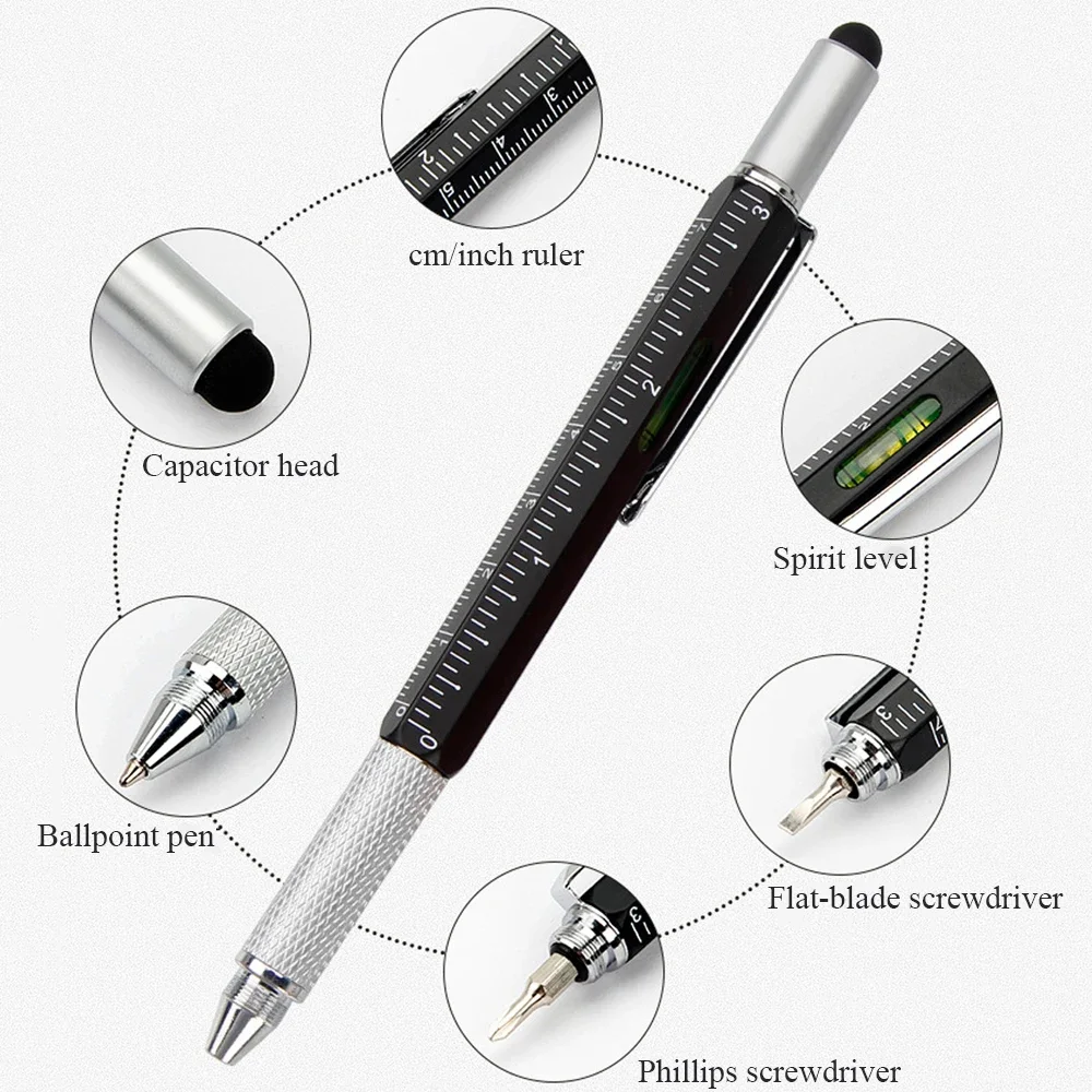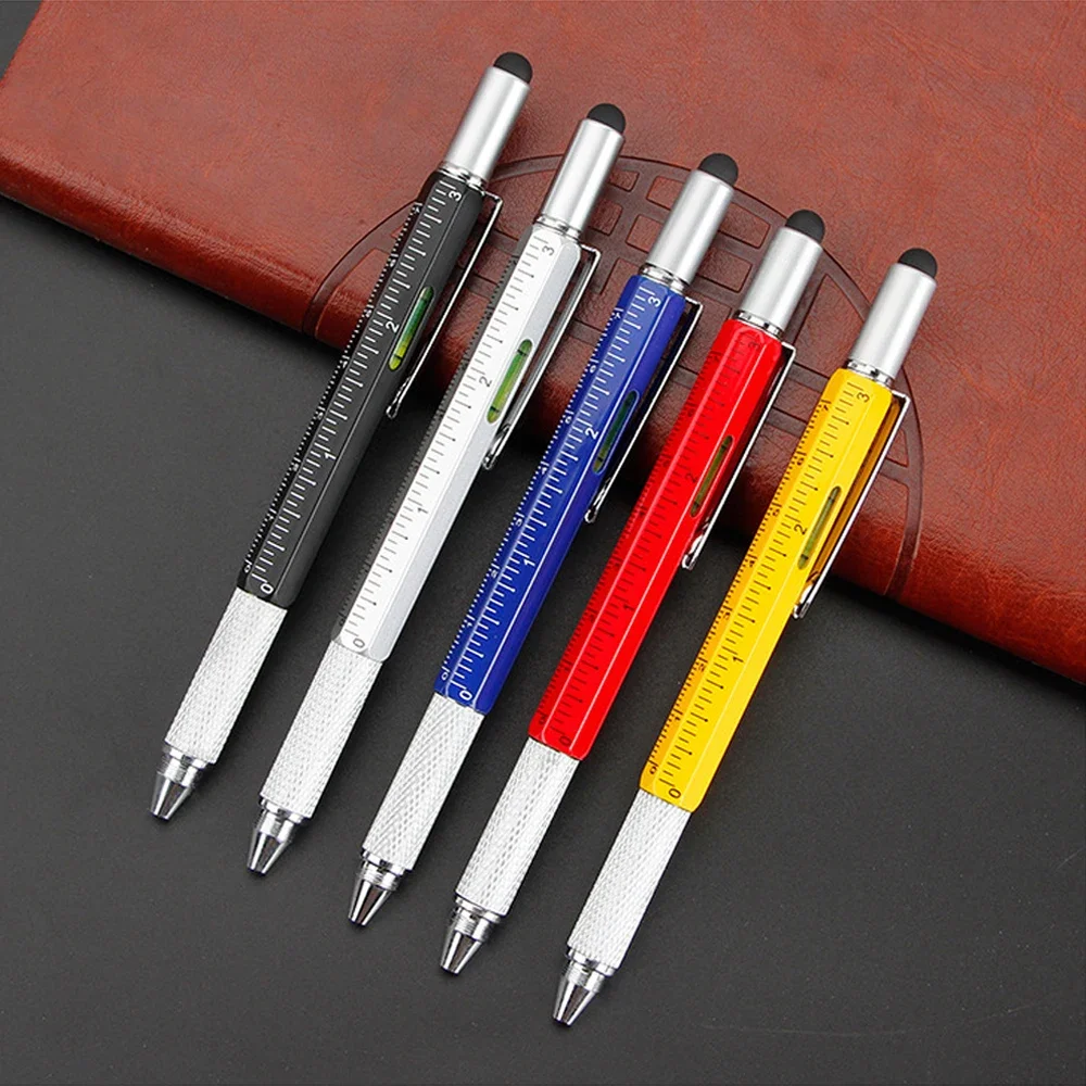 6 in 1 Multifunction Stylus Pen Ballpoint Pen Screwdriver Ruler Tool Touch Screen Stylus Spirit Level Replaceable Refill