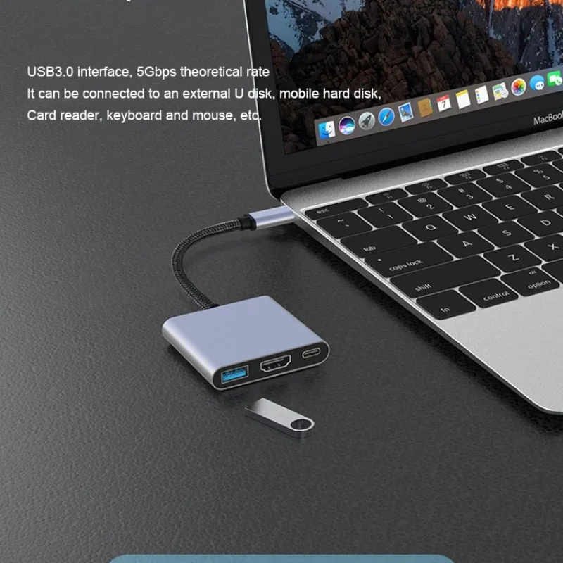 3 In 1 4K Type C Adapter Multi-function USB Hub Interface USB Fast Charger Computer 4K HDMI-Compatible Adapter Docking Station