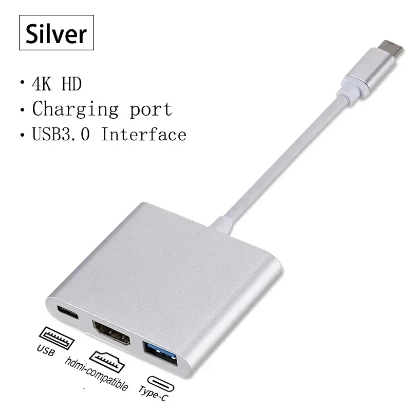 3-IN-1 GOLD PLATED Type C Male to Type C/HDMI compatible/USB Adapter Cable