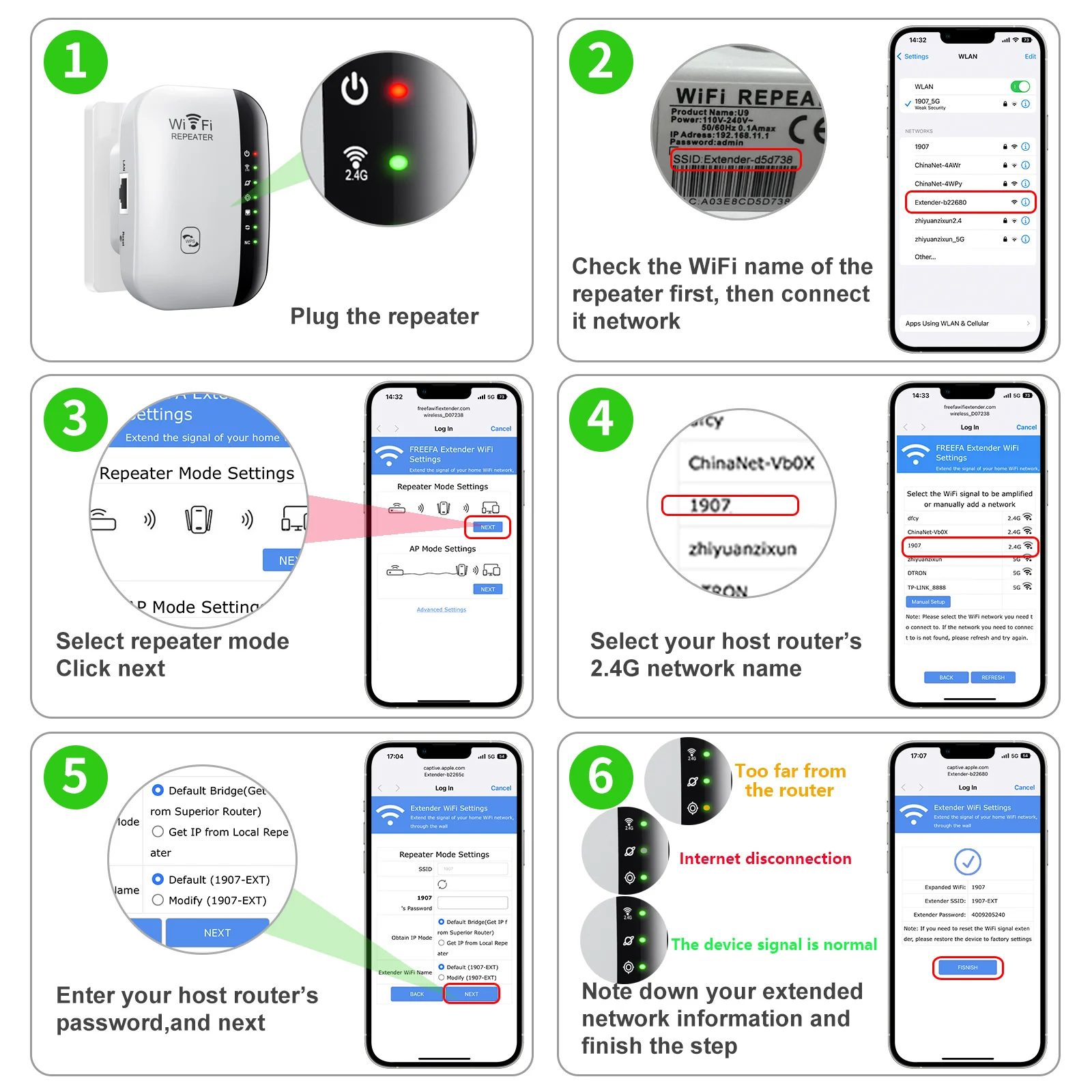 5. Simple Setup: This WiFi booster features the latest built-in chip and upgrade program, you can use your mobile phone or computer to easily complete the settings. No professional knowledge is required, it suits everyone. You can change the settings at any time without restoring them to factory settings, which reduces the hassle.