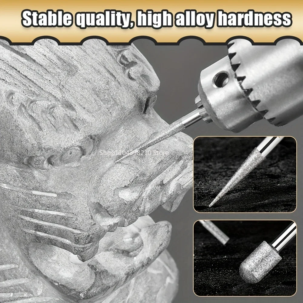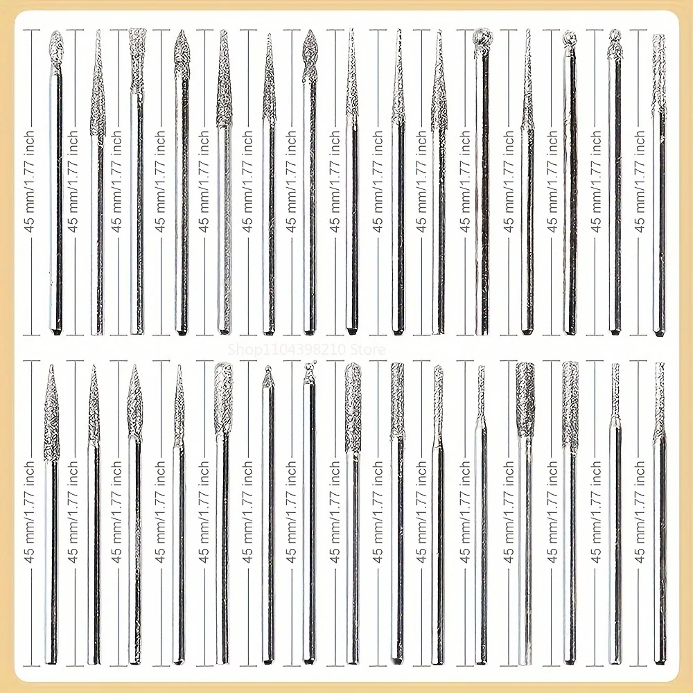 30pcs Diamond Grinding Burr Needle Point Engraving Carving Polishing For Glass Jade Stone 2.35/3mm Drill Bit Rotary Tool Set