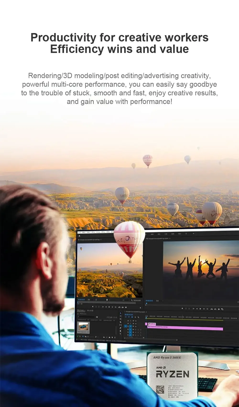 AMD Ryzen 5 5600X 3.7GHz 6-Core 12-Thread R5 5600X Socket AM4 7NM L3=32M Processor 65W DDR4 No cooler