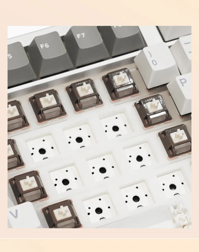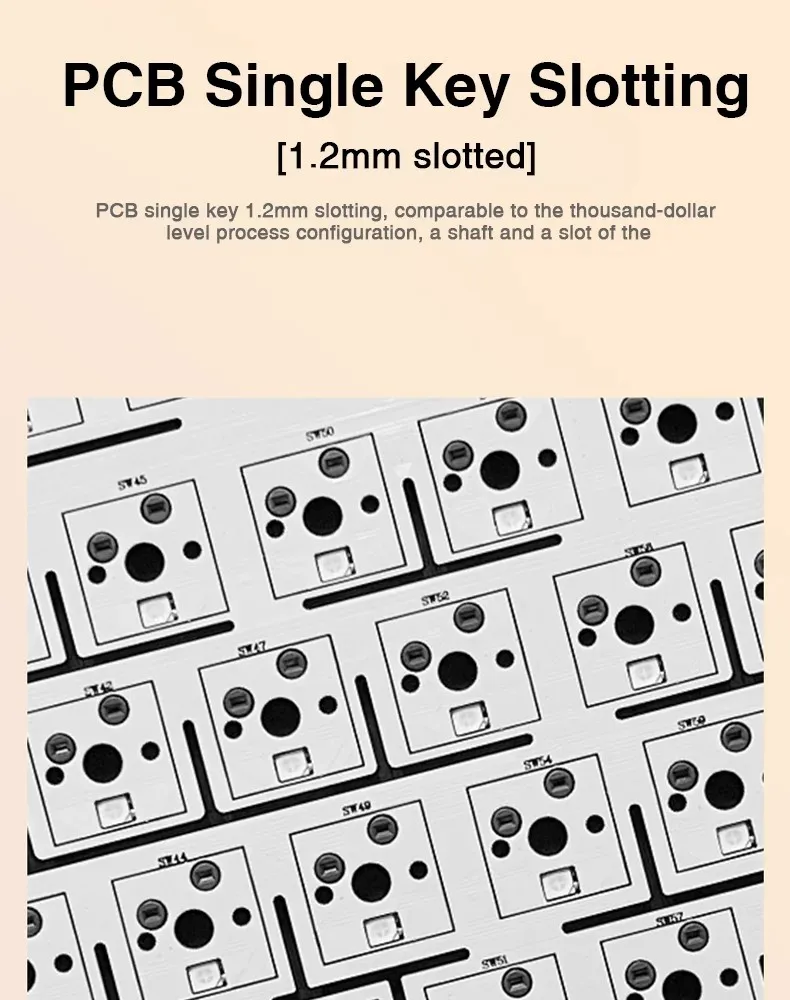 PCB single key 1.2mm slotting, comparable to the thousand-dollar level process configuration,the design is better optimized for consistency, and at the same time can ensure some soft play.