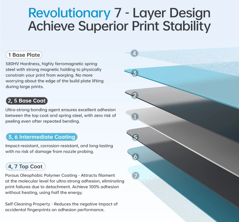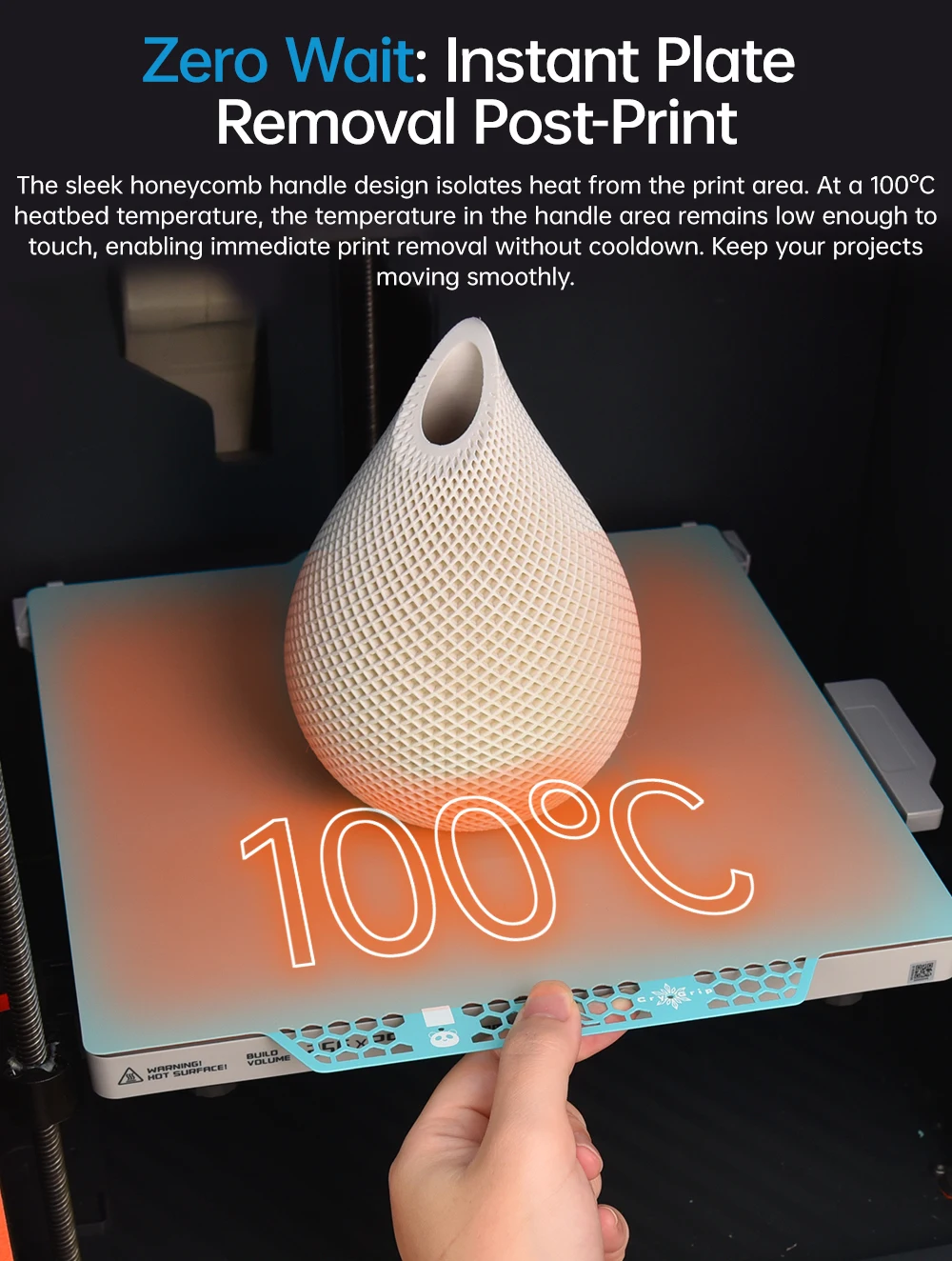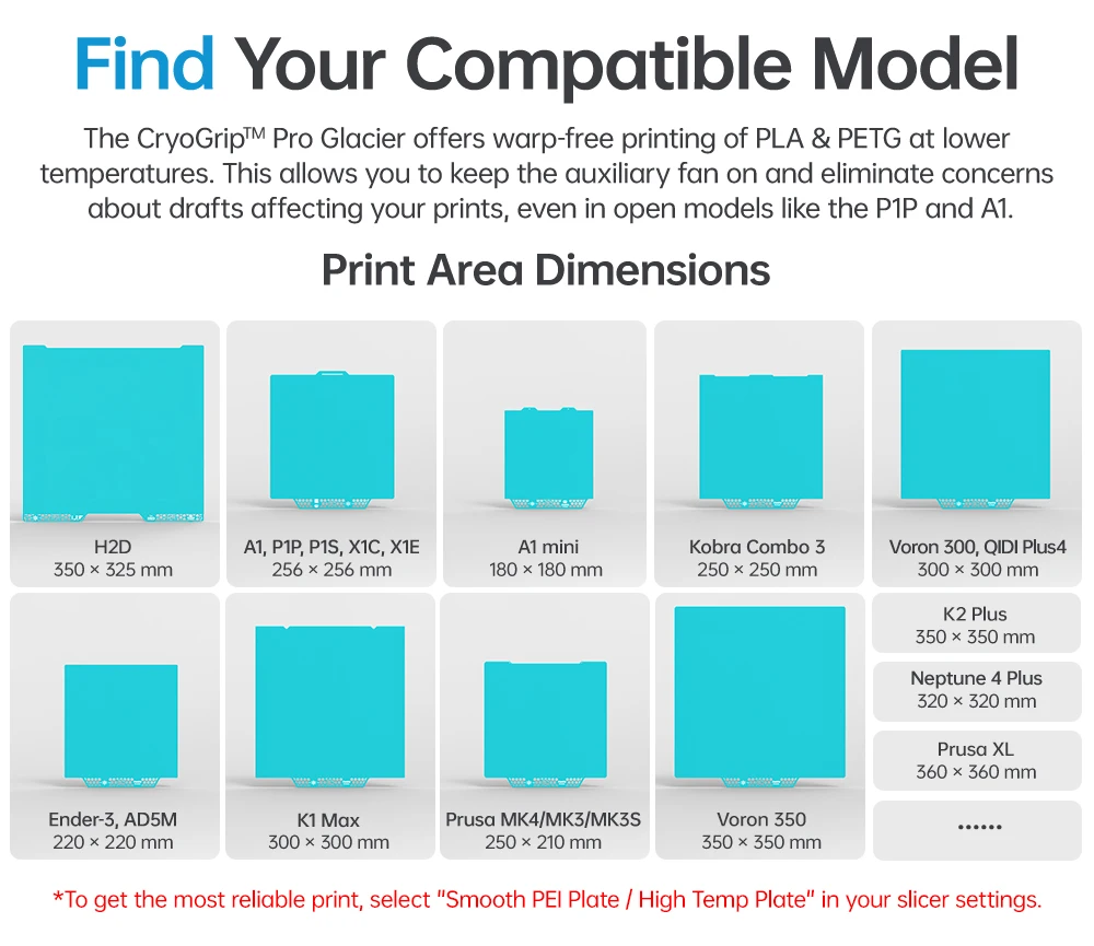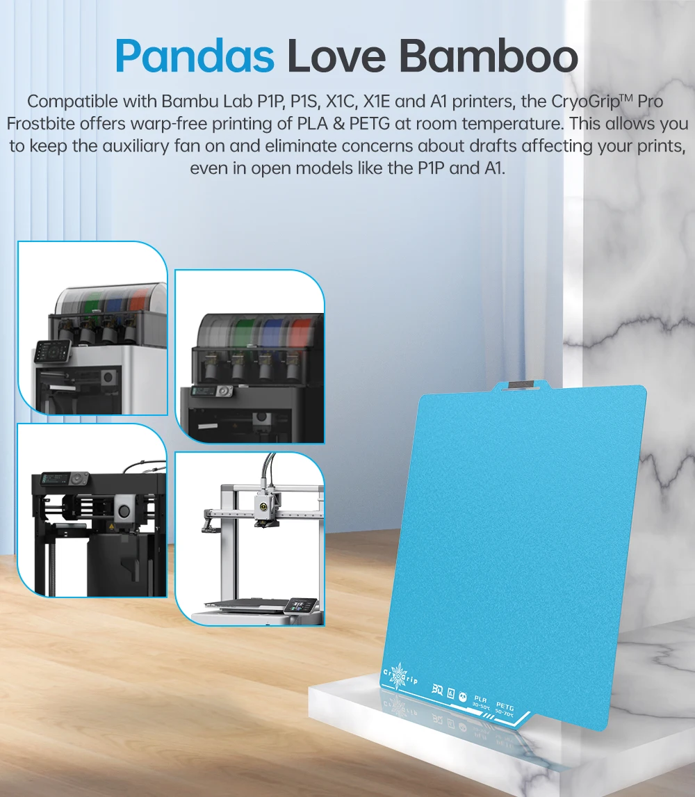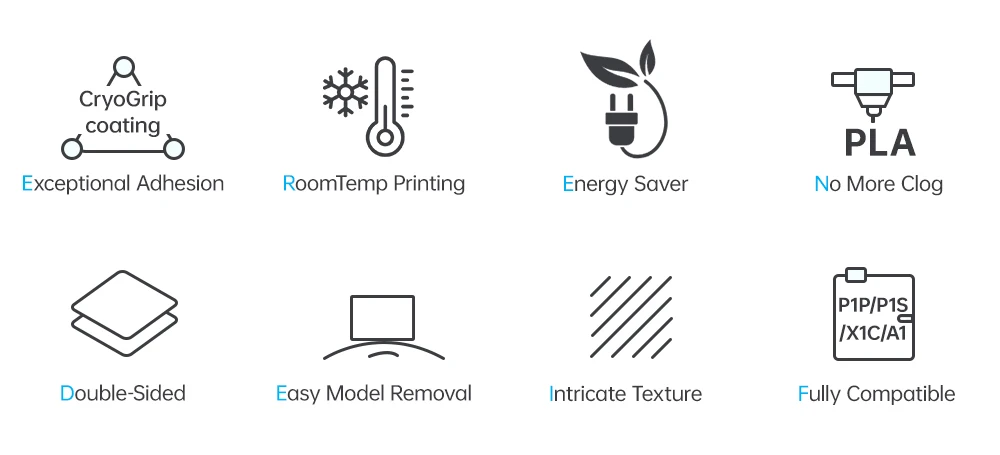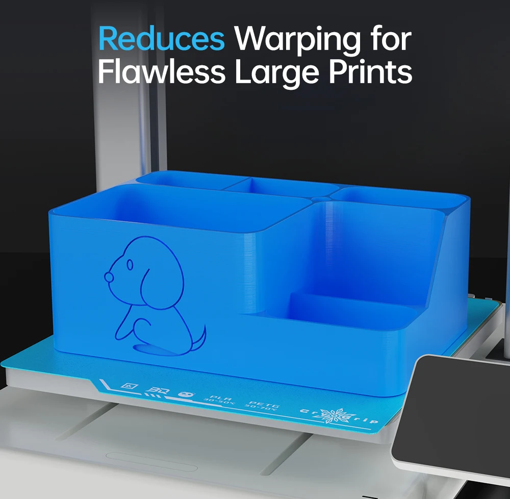 Experience unparalleled first-layer adhesion with our Cryogrip Buildplate,engineered to secure your prints firmly at room temperature . Enjoy flawless printing results with no warping