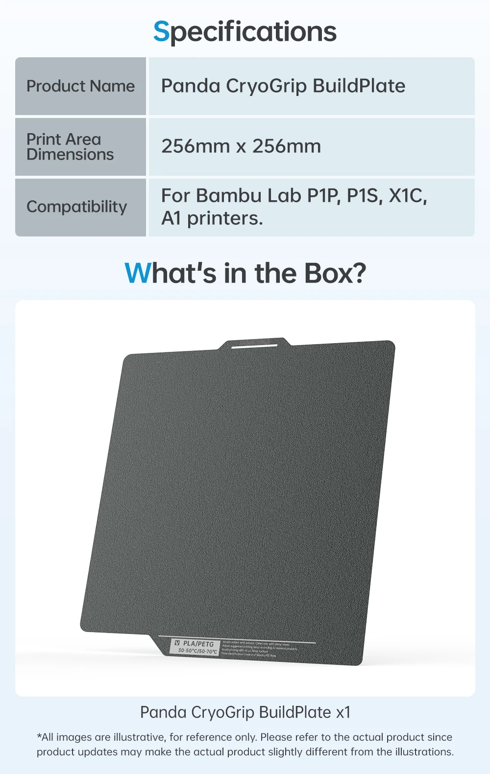 BIQU Panda Build Plate CryoGrip Coating No Clog 256x256mm Spring Steel Double-sided Textured for BambuLab P1 X1 3D Printer