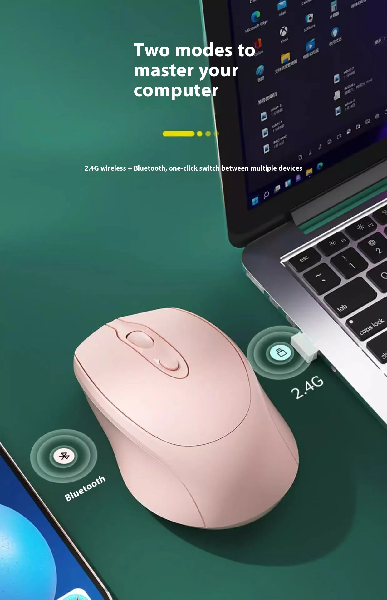 Note: The mouse only supports connecting to one device. When using Bluetooth connection, it cannot be connected with a USB receiver.