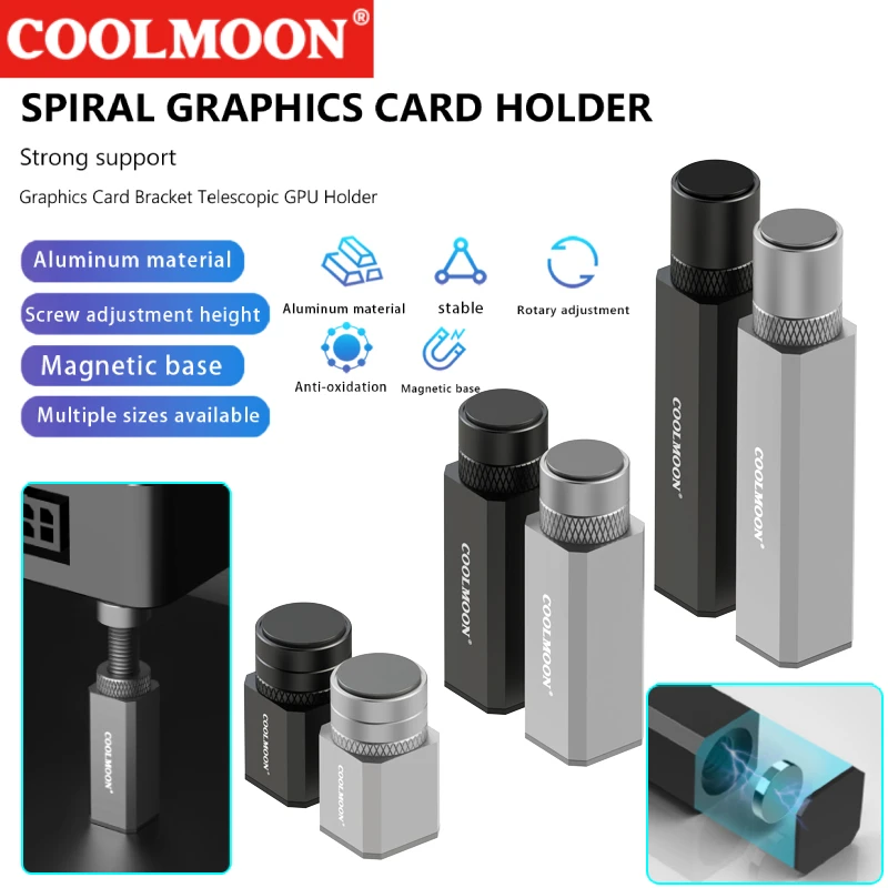 COOLMOON Graphics Card Bracket Telescopic Spiral Video Card Holder Magnetic Base Anti Scratch Non-slip for ATX/M-ATX/ITX Chassis
