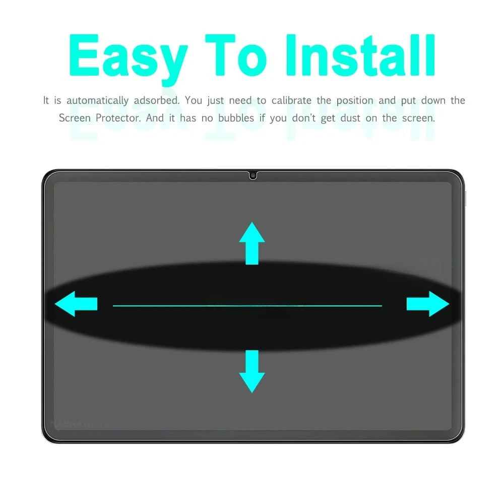 -- tear off and discard the safety film of screen protector, calibrate the position of screen protector and tablet screen and slowly put it down.