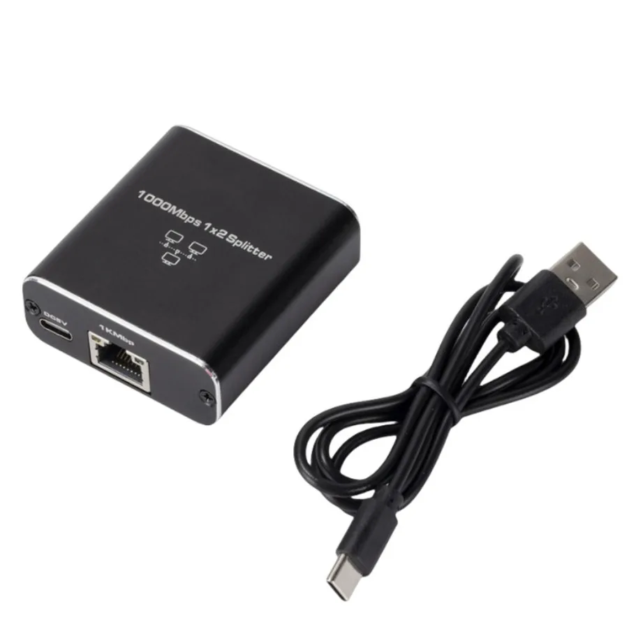 1. 1 to 2 Ports: This network cable splitter allows you to simultaneously connect your router or Ethernet switch to two different networks. The 1-to-2 output design of this Ethernet cable splitter is ideal for resolving connectivity issues caused by limited wiring. It serves as a simple yet efficient network distributor, helping you expand your network ports. It is powered by the included USB cable and supports sharing one Ethernet line between two computers.