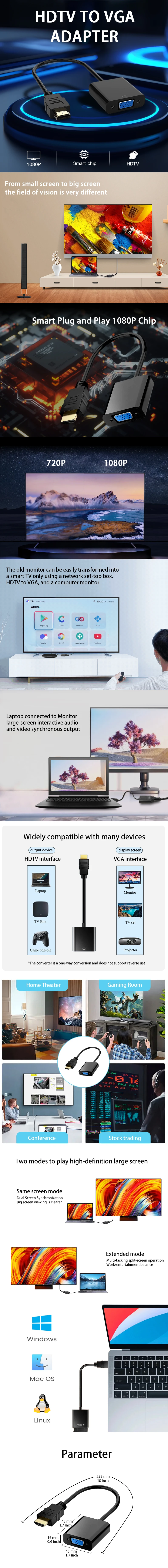 • High-Speed HDTV to VGA Adapter: Experience seamless video transmission with this high-speed HDTV to VGA adapter. Ideal for PC laptops, it ensures clear, uninterrupted visuals every time.