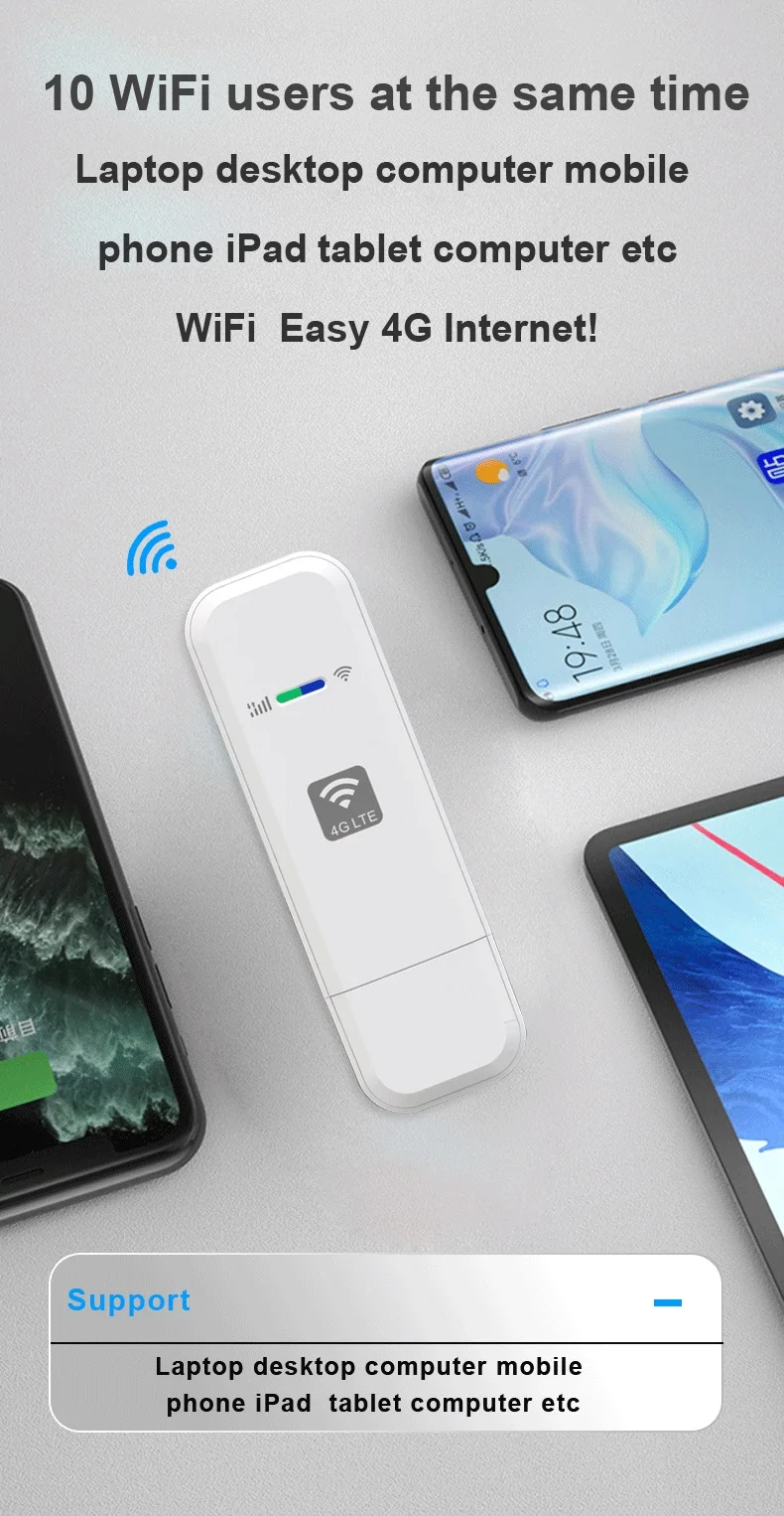 Tablet ,Laptop, computer, Mac books ,mobile phones and different types of WI-FI devices can connect to the 4G WiFi routert to access to Internet .