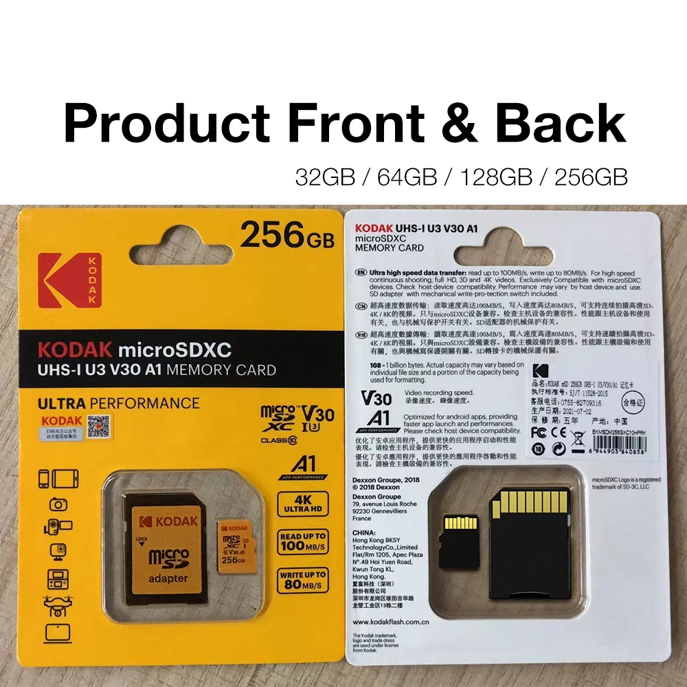 Kodak Micro SD 128GB SD card 32GB flash drive Memory Card 64G class 10 U3 4K cartao de memoria 128G micro sd memory card