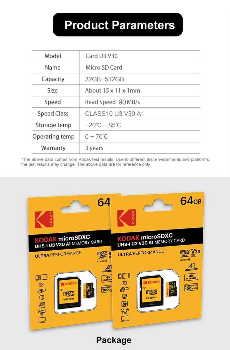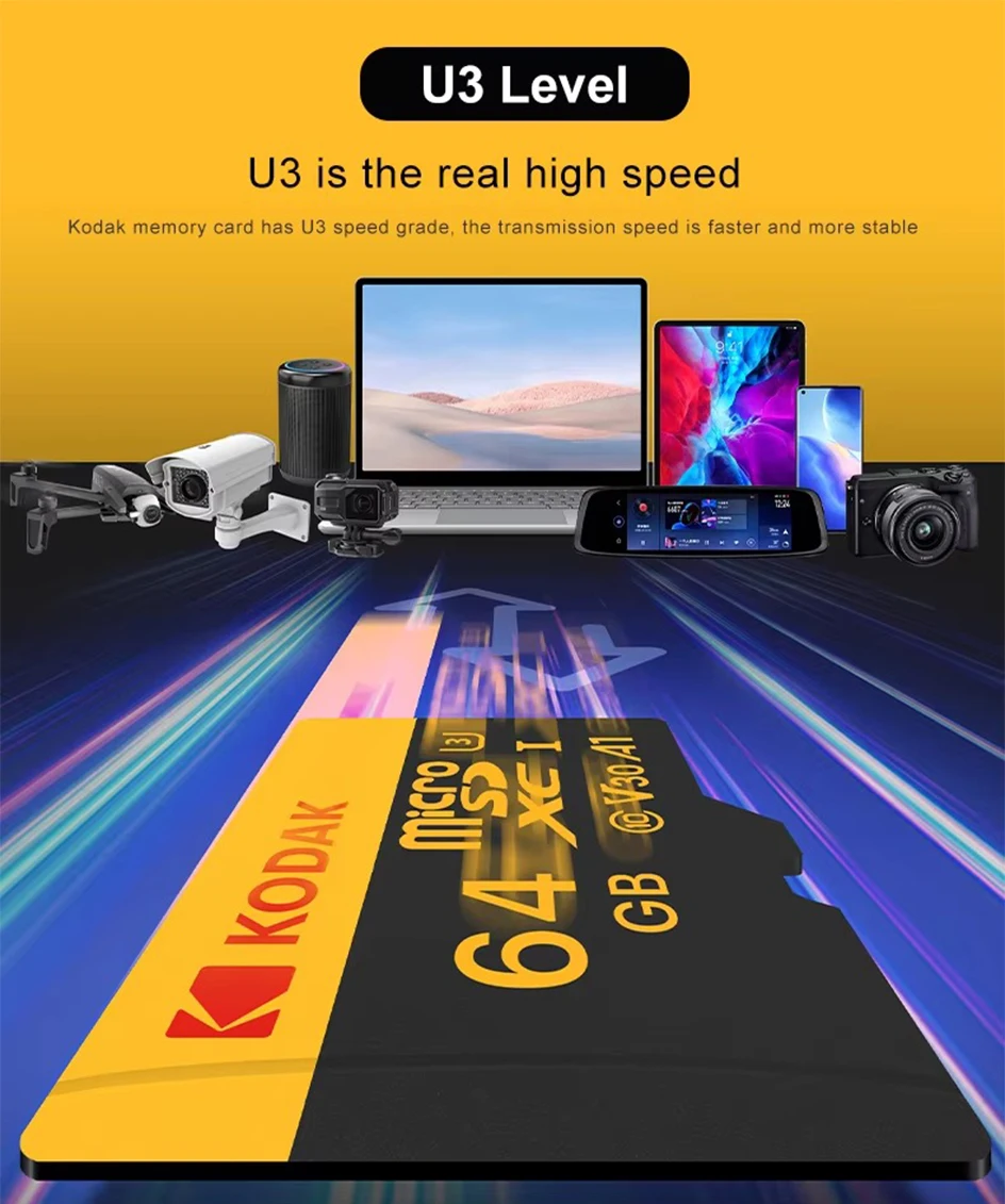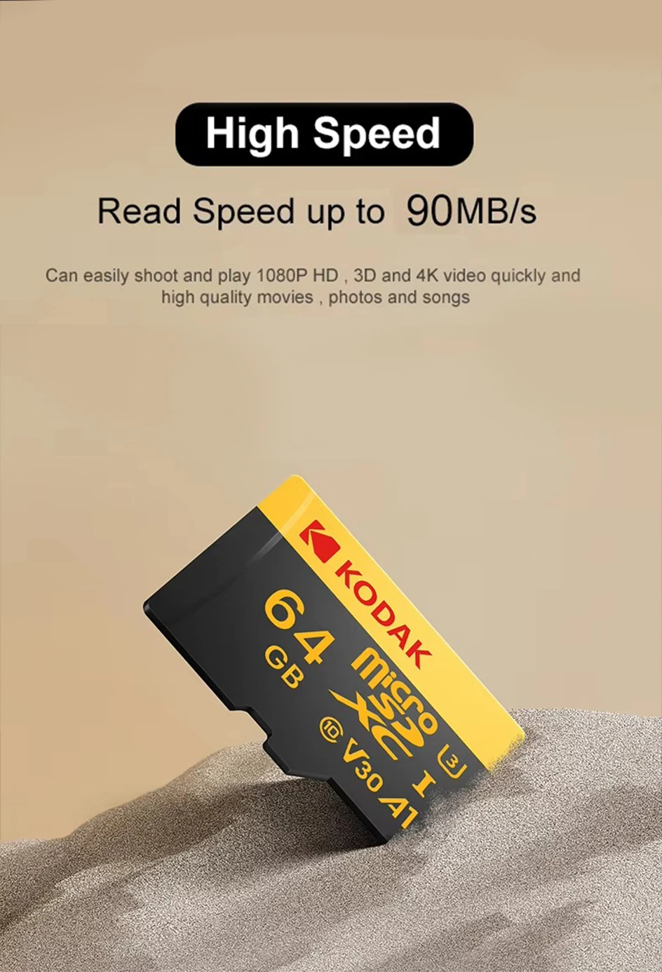 Kodak memory card has U3 speed grade, the transmission speed is faster and more stable