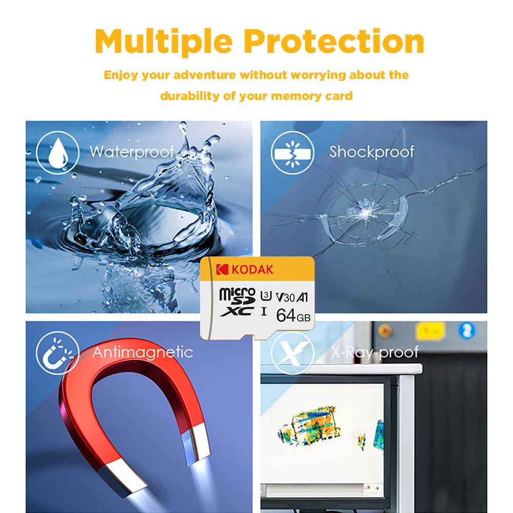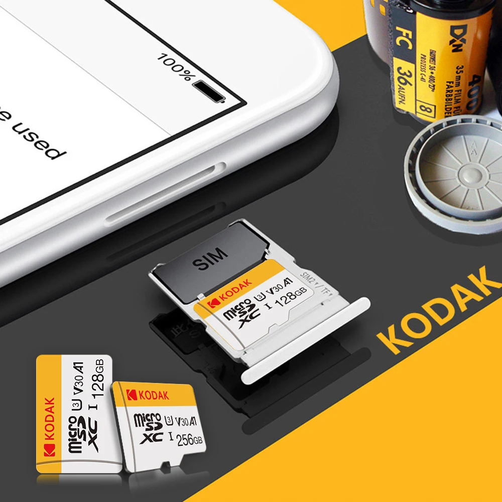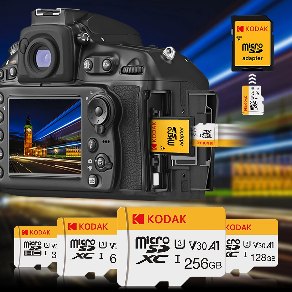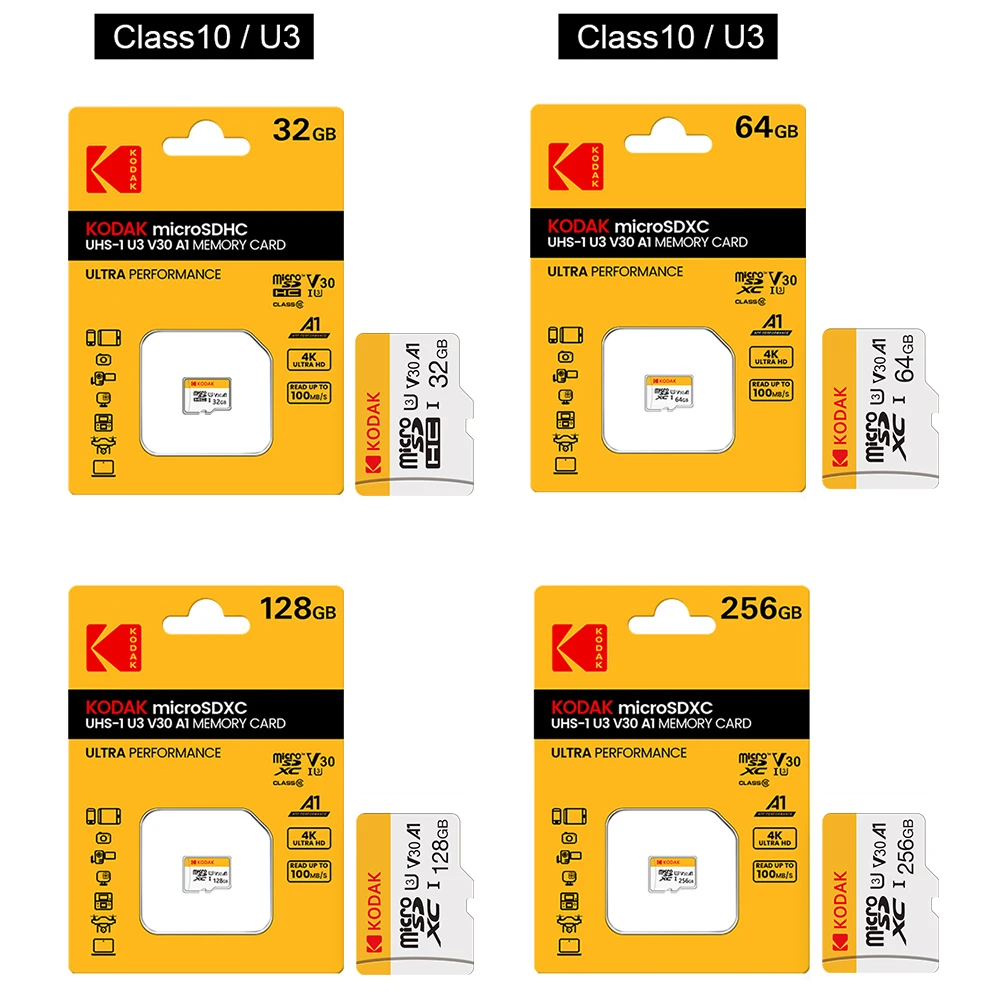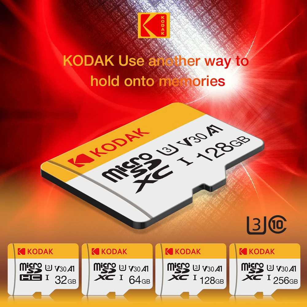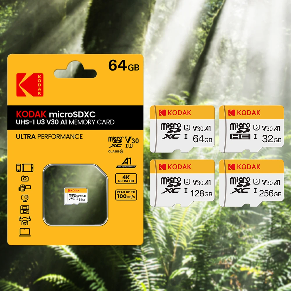 KODAK Mini Memory SD Card 256GB 128GB 64GB 32GB U3 V30 4K Full HD Micro TF Memory Flash Card for Phone/Computer/Camera