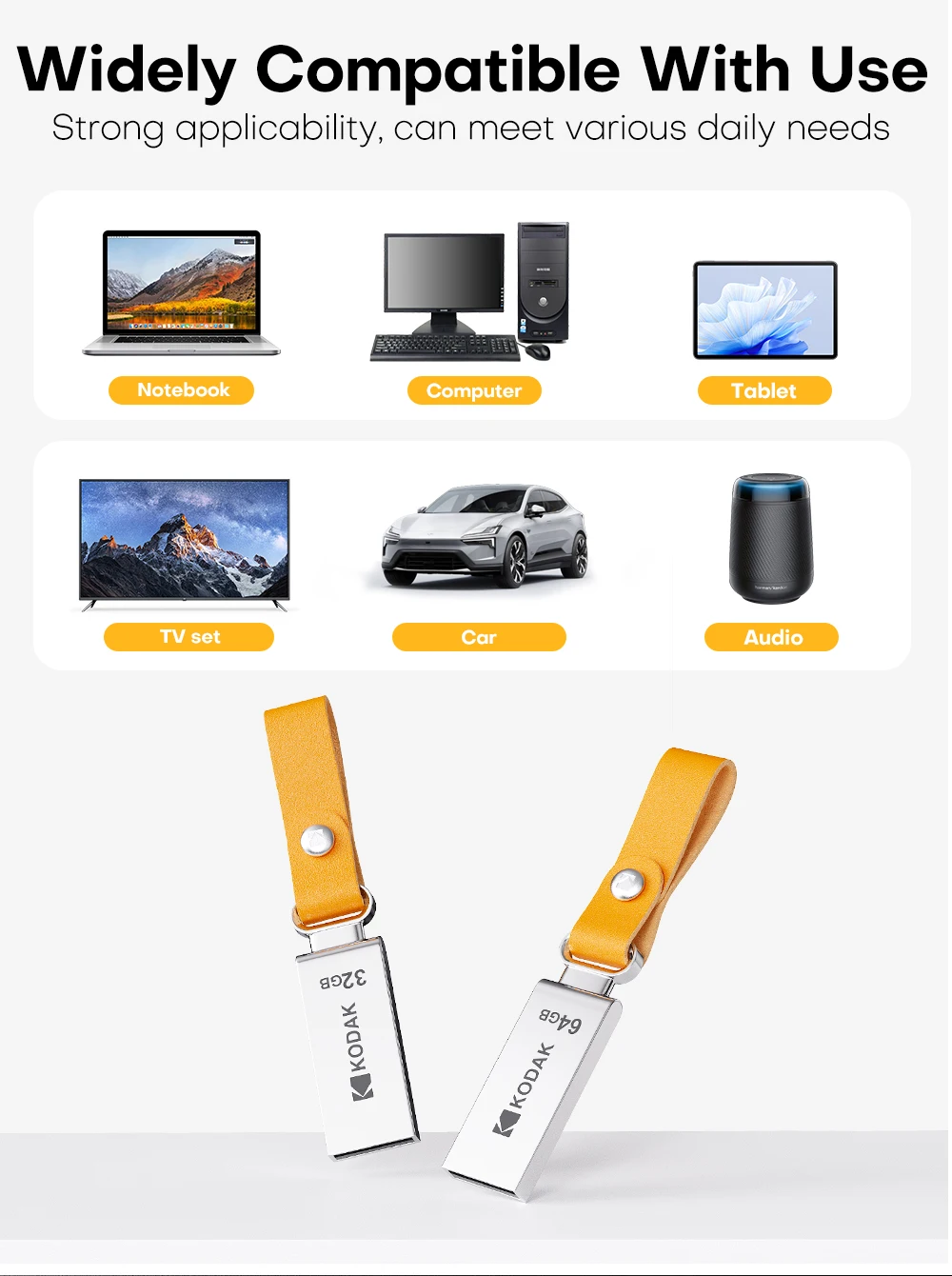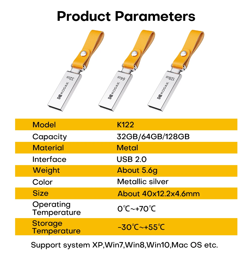 KODAK Mini USB Flash Drive Drive USB Pendrive U Disk Memory Stick 128GB 64GB 32GB USB Storage Key for PC with Leather Band Gift