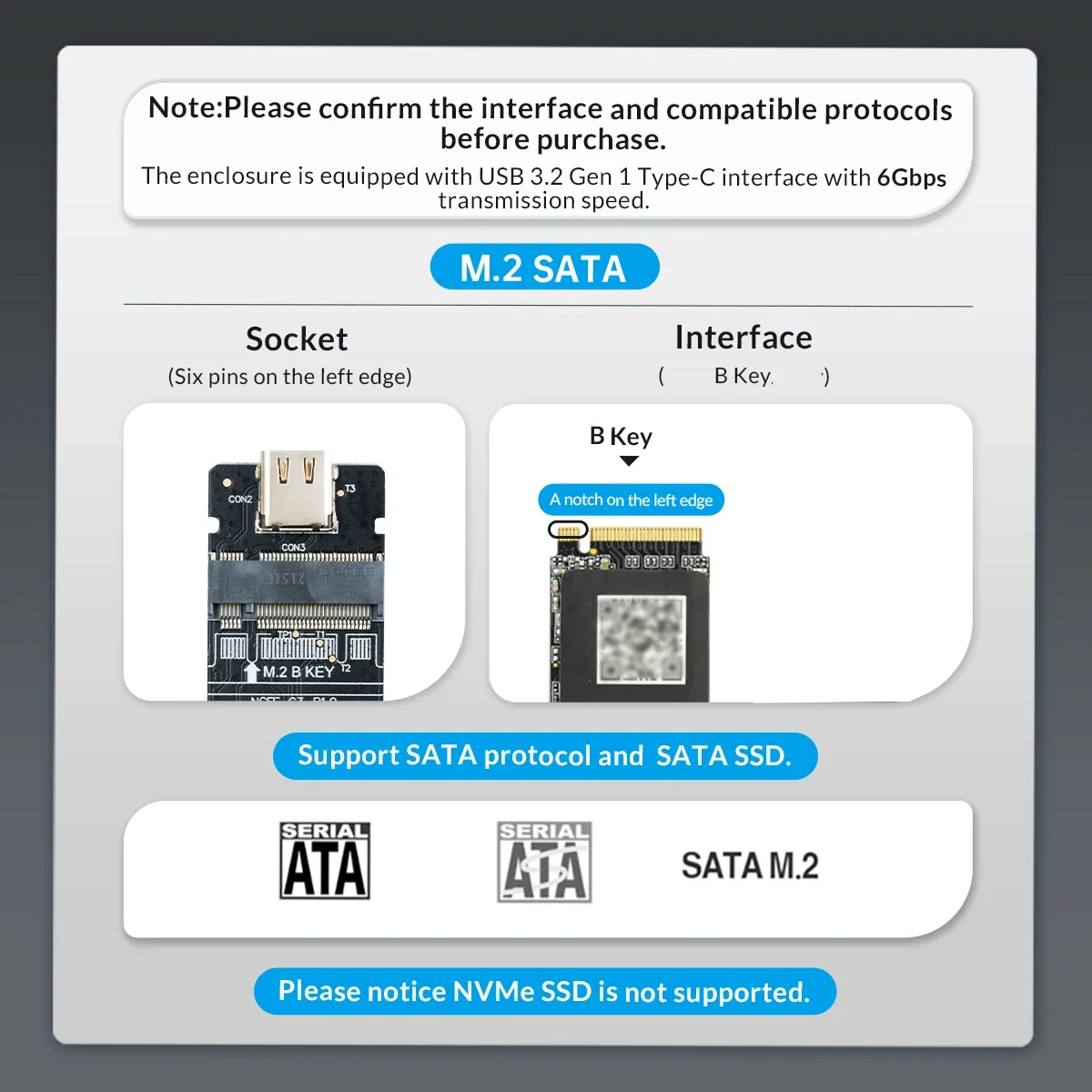 1) Only Support SATA : Interface (B Key) + Support SATA protocol and SATA SSD