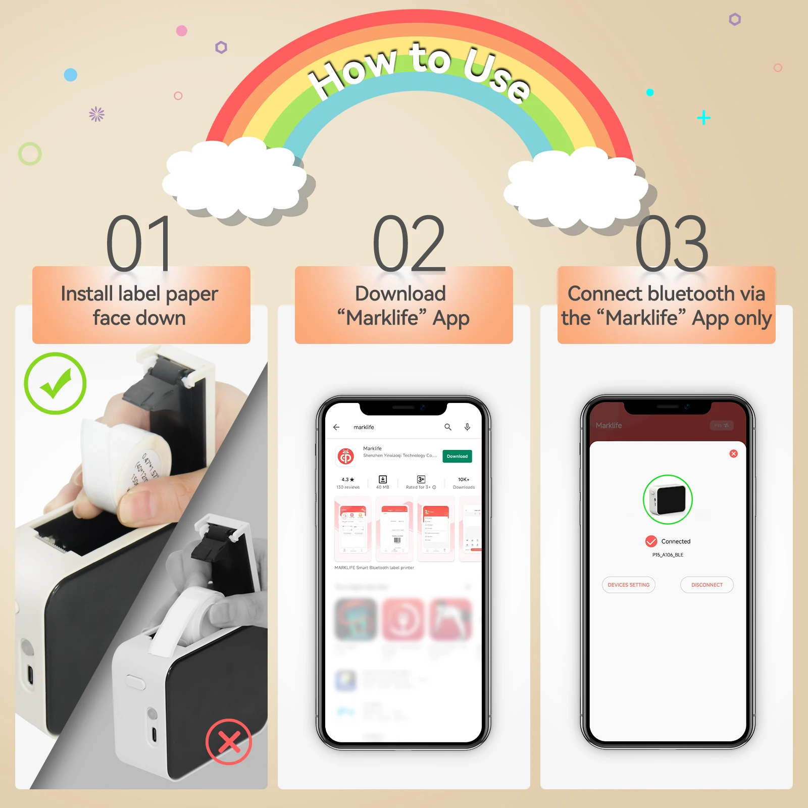 【Compact and Portable】Mini-size wireless-connected Marklife thermal label printer for Convenient & Fast printing, easy to create labels from smart mobile devices.(only support for android and iphone,not support PC ) small enough to slide into your pocket, easy to carry anywhere.(Package list: P15 label printer x 1, 12 mm x 40 mm white label paper x 1, USB cable x 1, manual x 1. Tips: the charging plug is not included)