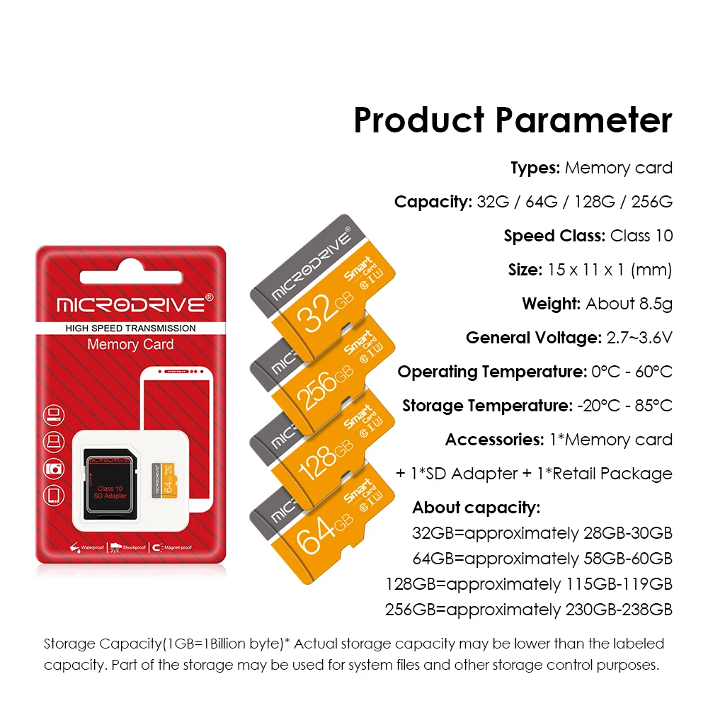 Micro TF/SD Card 128GB Class 10 16GB 32GB 64GB 256GB Memory Cards for Camare Phone Mini TF Card