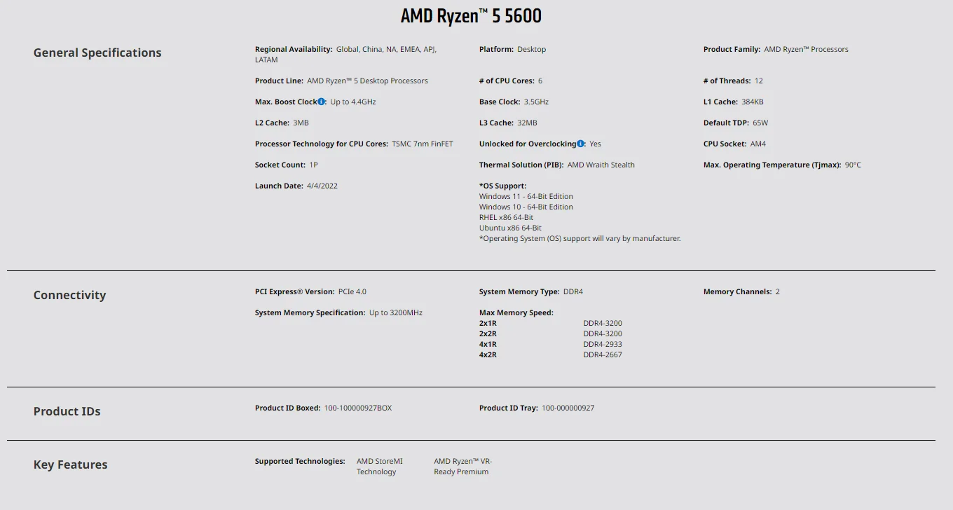 NEW AMD Ryzen 5 5600 R5 5600 3.5 GHz 6-Core 12-Thread CPU Processor 7NM L3=32M 100-000000927 Socket AM4 Graphics Chips Processor