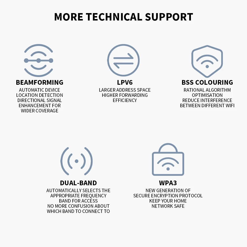 ● Enhanced OFDMA: Utilizes Multi-RU high-end allocation technology for flexible bandwidth distribution, ideal for large families sharing a high-speed network.