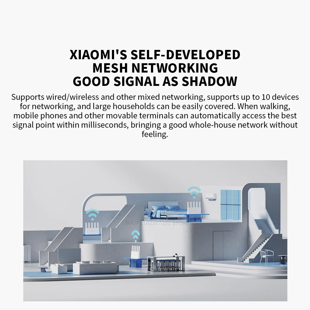 ● Xiaomi Self-Developed Mesh Networking: Supports wired/wireless mixed networking methods for up to 10 devices, covering large homes easily.