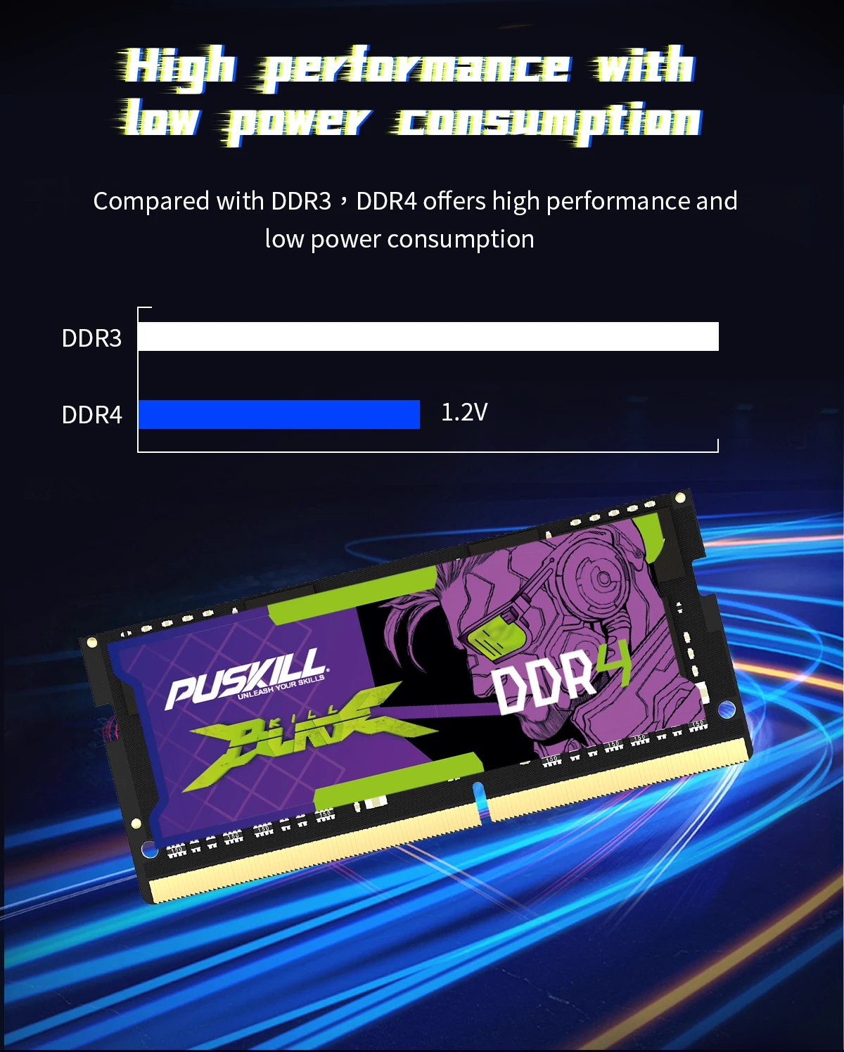 • Product: Puskill Killblade Notebook Memory 32/16/8/4gb Ddr4 Ddr3L 3200/2666/1600/1333mhz Cl22/Cl19/Cl17/Cl11/Cl9