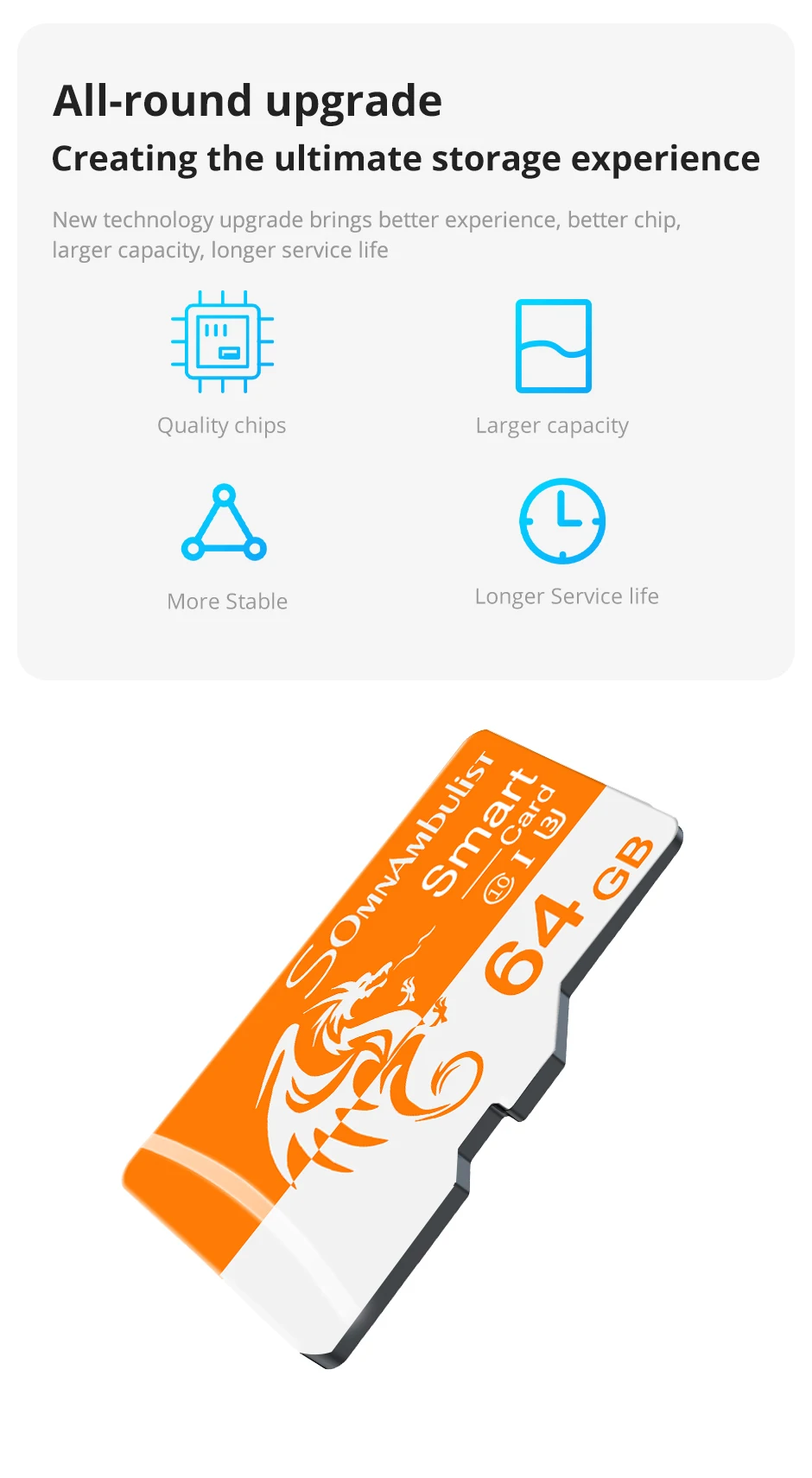 SomnAmbulist Memory Card 64GB High Speed Mini TF Card C10 U3 A1 for Drone Audio Surveillance Device 64GB TF Card